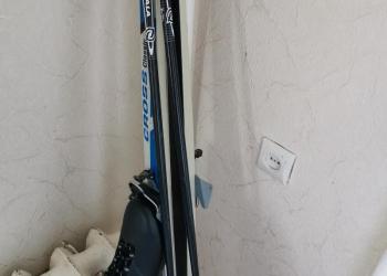 Продаю лыжи в комплекте с палками и ботинками, лыжи 207 длина ботинки 45 размер, второе лыжи 197см,ботинки43 размер б/у мало...
