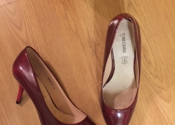 натуральная кожа лакированные туфли бордового цвета, каблук невысокий .