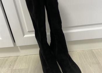 Натуральные зимние сапоги , замша , размер 37, удобный каблук , б/у один раз , состояние новых . На ноге смотрятся красиво .