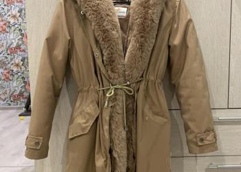 Зимнее пальто 48 размер, внутри синтепон и натуральный кролик. Мех на капюшоне достаточно пушистый. С поясом чёрным.