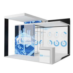 Полноценная модульная конструкция – выставочный павильон - с LED-экранами и сенсорным терминалом управления.