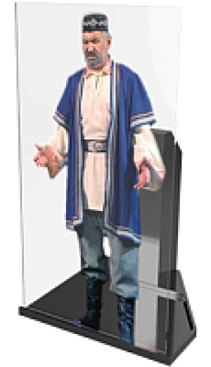 Проекционный манекен - это прозрачный экран, на который короткофокусный проектор проецирует изображение персонажа.