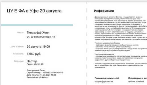 Билеты на концерт цу е фа 20 августа в Уфе . Вместе с мит грид