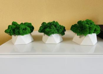 Цена 400 р штука. Кашпо со стабилизированным мхом Ягель, размеры: ширина 9см, высота 4,5 см. Отлично смотрится в интерьере.