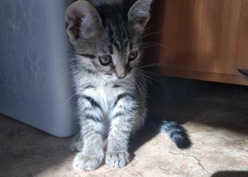Котенок, масть серая девочка два месяца, самостоятельная, все умеет - красивое и доброе потомство.